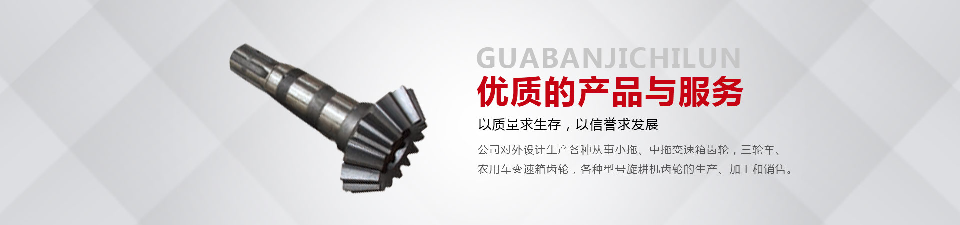 本廠(chǎng)位于省會(huì)東南60公里的全國(guó)重點(diǎn)鎮(zhèn)——大陸村鎮(zhèn)。本廠(chǎng)在市場(chǎng)內(nèi)設(shè)有銷(xiāo)售公司,經(jīng)銷(xiāo)工程機(jī)械;農(nóng)用拖拉機(jī);農(nóng)機(jī)具的整機(jī)和全車(chē)配件。市場(chǎng)緊靠308國(guó)道,距青銀高速寧晉路口14公里,交通十分方便。主要從事小拖、中拖變速箱齒輪,三輪車(chē)、農(nóng)用車(chē)變速箱齒輪,各種型號(hào)旋耕機(jī)齒輪、收獲機(jī)械變速箱齒輪的生產(chǎn)、加工和銷(xiāo)售。同時(shí)加工定做各種直齒輪,傘齒輪,斜齒輪,鏈輪,齒輪軸等機(jī)械產(chǎn)品。廠(chǎng)內(nèi)檢測(cè)手段齊全。十幾年來(lái)與河北、北京、山東、安徽、河南、吉林、陜西、山西、寧夏、黑龍江、遼寧等省市的企業(yè)建立了穩(wěn)固的業(yè)務(wù)關(guān)系。產(chǎn)品質(zhì)量穩(wěn)定、價(jià)格合理、供貨及時(shí)。